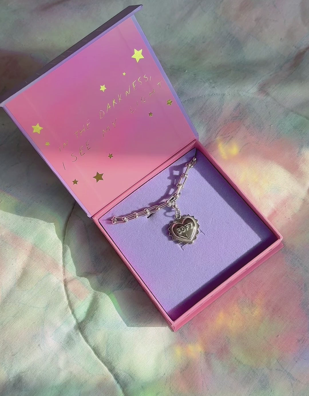 18k gold plated stainless steel chain with lobster clasp, with removable Soft Heart charm. The charm is clipped on to the chain with a lobster clasp as well, this allows you to wear the chain alone or with the charm, you can also wear it with other charms!