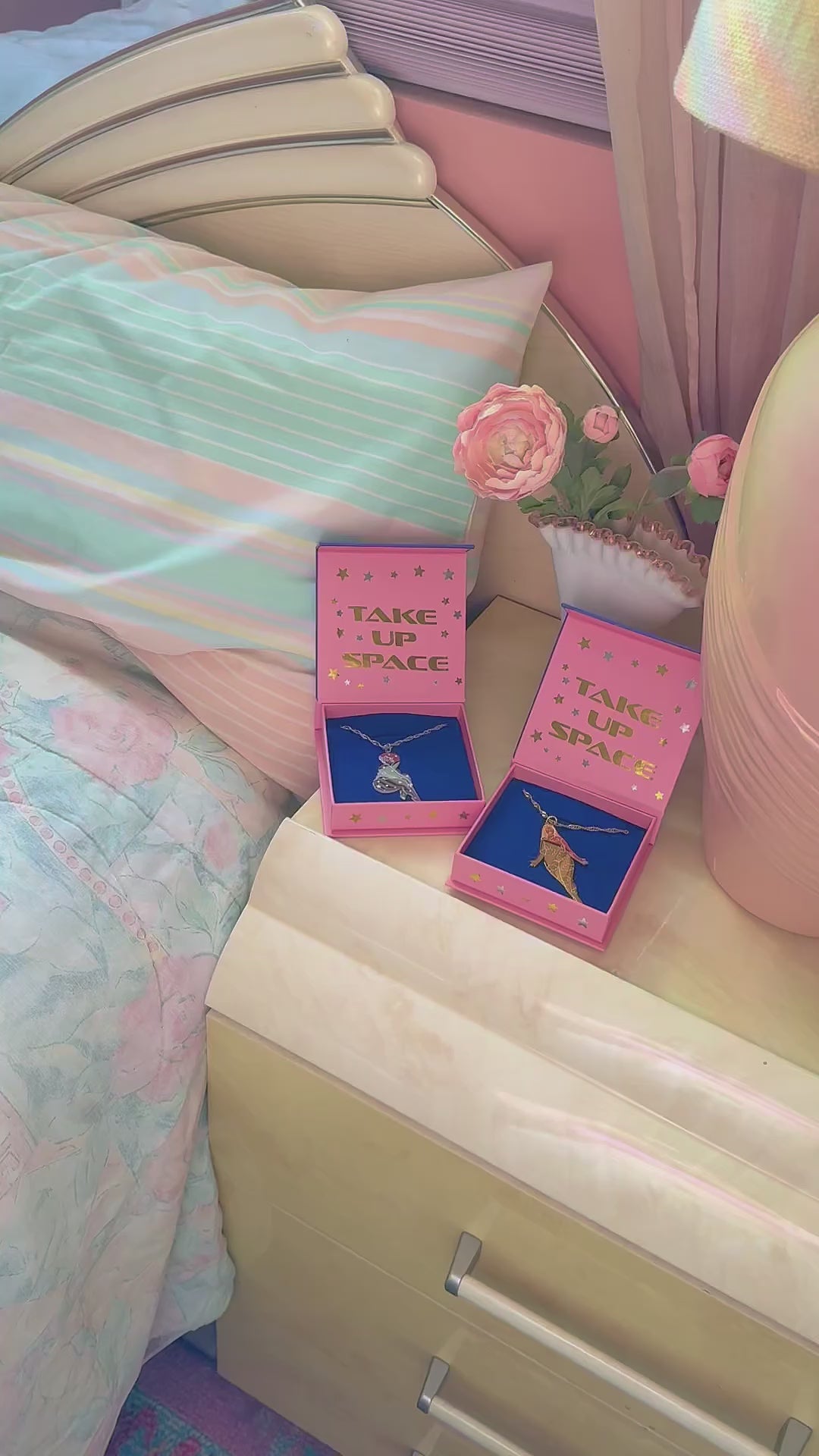 Gold plated stainless steel with CNC etched cutout inlays. These babies are a STATEMENT PIECE. Goddess of the Light Pendant comes on a 20" base chain with a 5" extension. Your necklace comes in it's signature Take Up Space Box - designed to be used over and over.